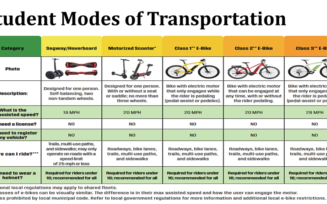 I don’t know about issues on campus, but in our neighborhood we’re seeing a huge increase in e-bikes and e-scooters flying down city streets, 2x to 5x faster than regular bikes, with no regard to stop signs, crossing traffic, pedestrians, and etc. Many of these are being ridden by kids no more than 7 or 8 years old. We stopped one boy, about 6 years of age, driving his electric mini car on Lake Knowles Circle, heading for Temple Drive, with no adults in sight. Maybe all the electric transports should be banned for kids under 18?