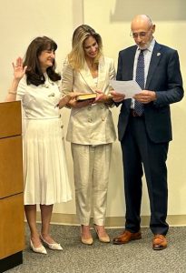 Mayor Sheila DeCiccio is sworn in on April 10, 2024 alongside her husband and daughter.
