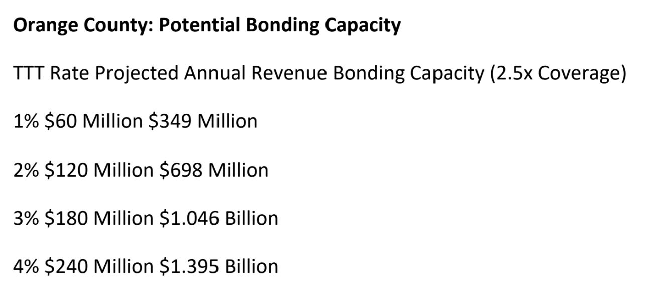 The steady revenue stream provided by the tax could be leveraged to finance major projects through bonds. One extra cent could generate nearly $350 million in bonding capacity, according to projections.