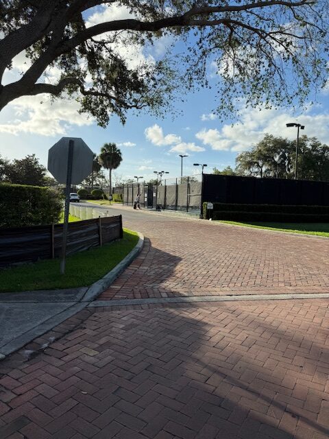 A view of the club’s pickle ball courts from Via Tuscany.