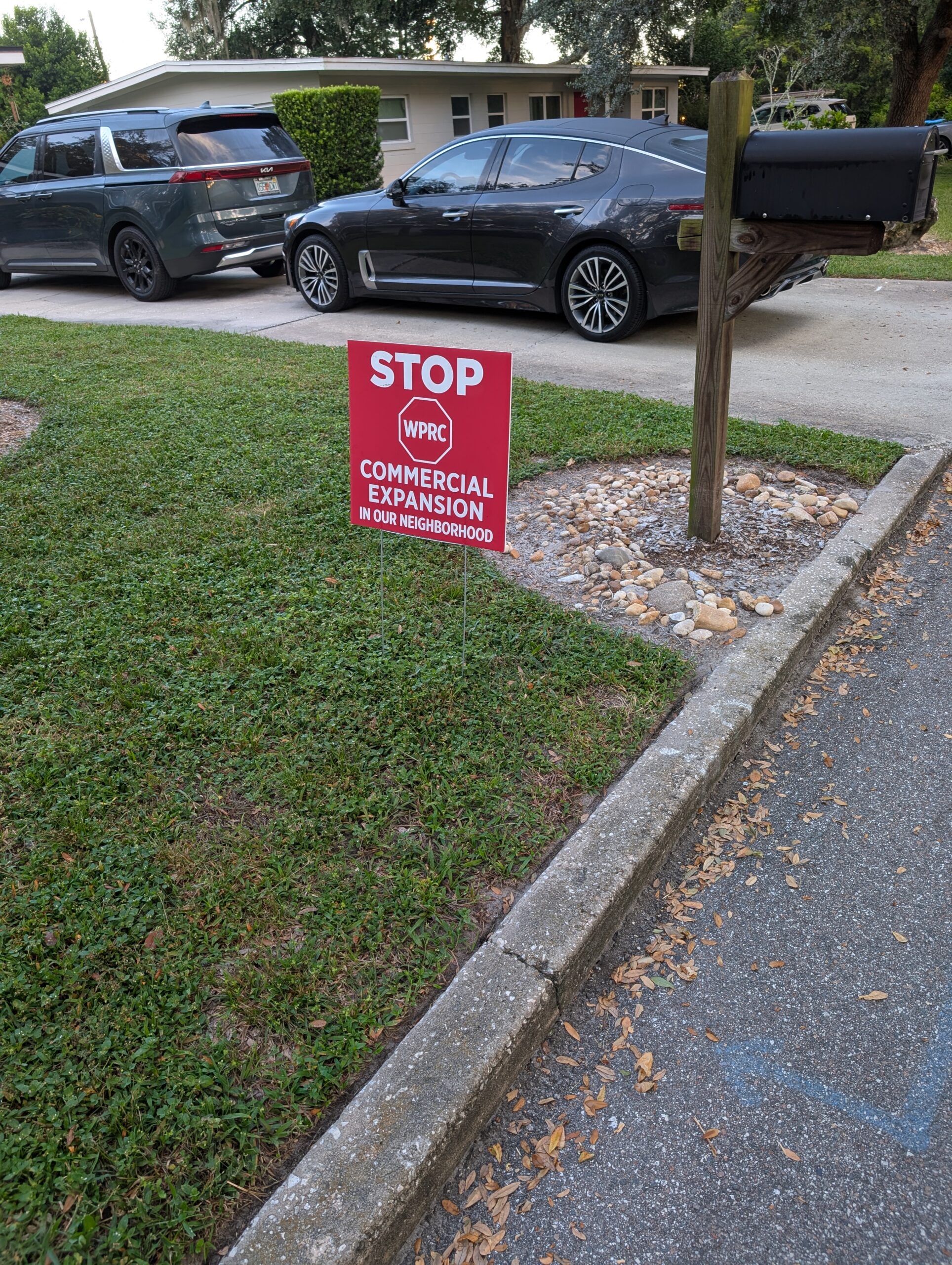 A sign in the neighborhood near the Racquet Club opposes changes there.